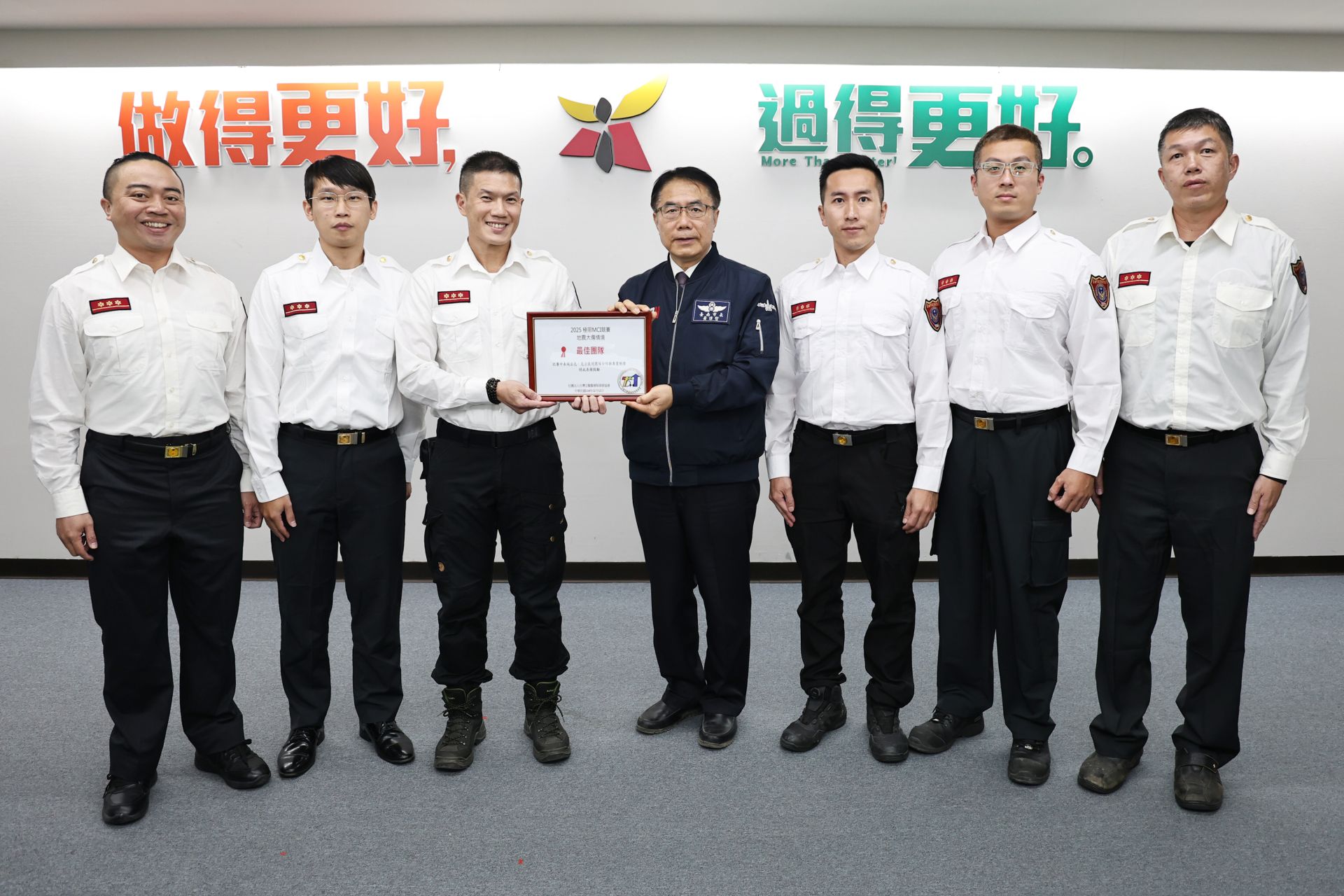 ▲黃坤裕小隊長率領的團隊,在「2025第六屆第一線應變人員大量傷患技能競賽(First MCI)」,榮獲「最佳團隊獎」(新聞處 提供)
