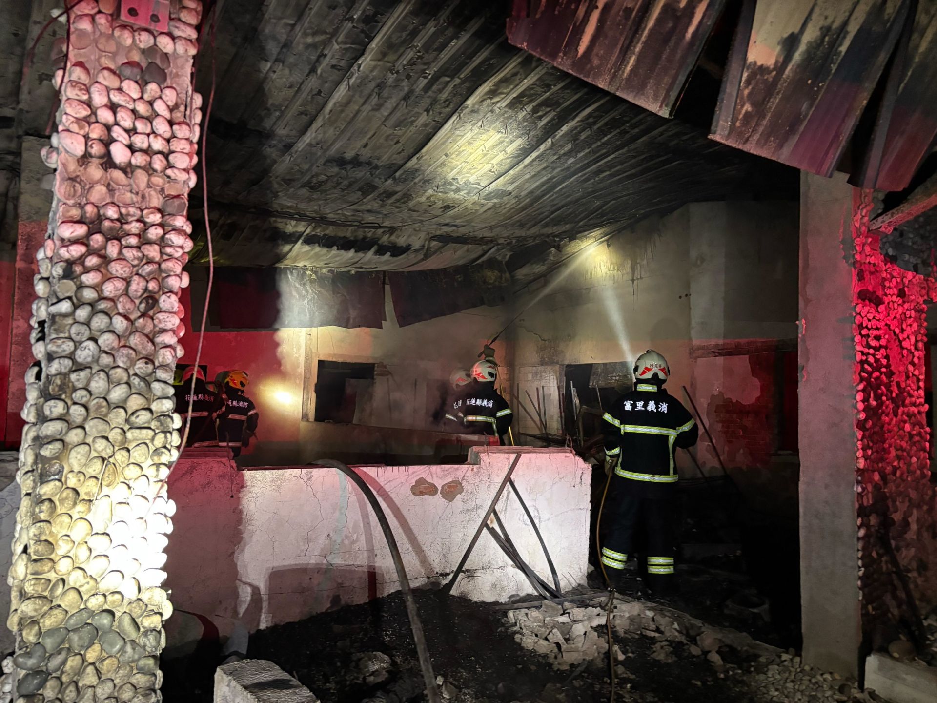 消防車抵達前附近民眾一度自行灌救,但因建築結構為木材及鐵皮搭建火勢延燒迅速,消防人員到場灌救至8時30分左右控制火勢,今天凌晨零時23分左右撲滅,至於起火原因及財損有待進一步調查。