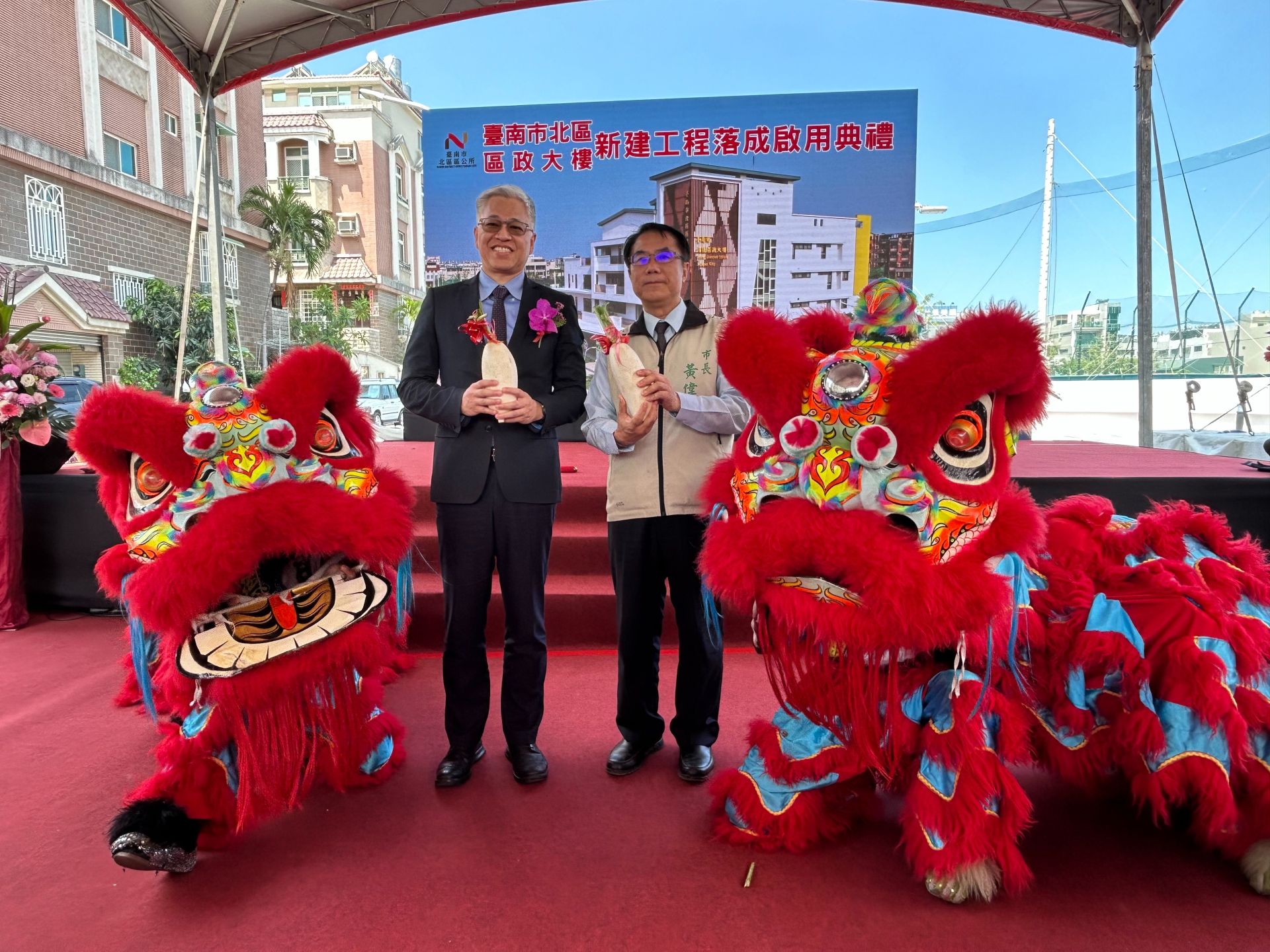 經過流標6次、耗資3億5千餘萬的台南市北區區政大樓日前完工,今(13)日舉行啟用典禮,由市長黃偉哲、內政部常務次長吳堂安及多位中央與地方民意代表等貴賓共同剪綵見證。全新落成的區政大樓結合區公所、戶政及社福功能,提供一站式整合服務,成為北區重要公共建設新地標,也象徵區政服務邁入嶄新階段。