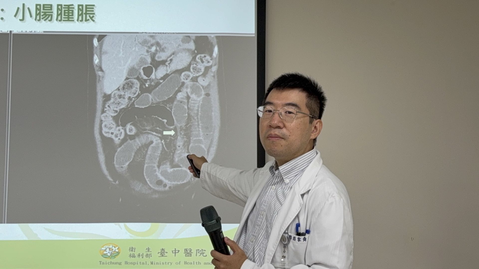 台中醫院肝膽腸胃科莊家舜醫師說明少年小腸腫脹的狀況。(台中醫院提供)