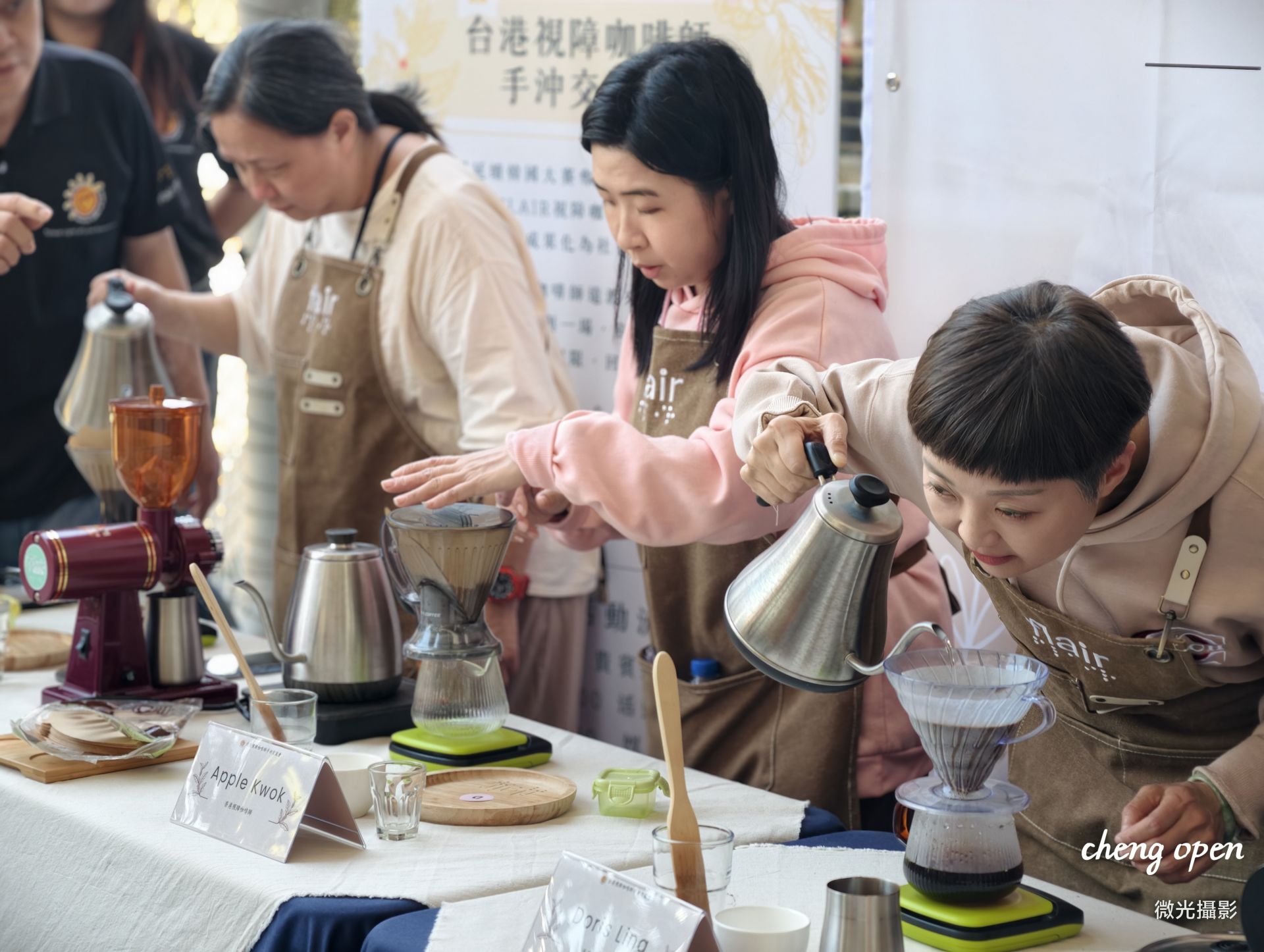 現場,15位來自台灣與香港的視障咖啡師輪番上陣,沒有華麗舞台,只有最純粹的吧台與咖啡香氣。