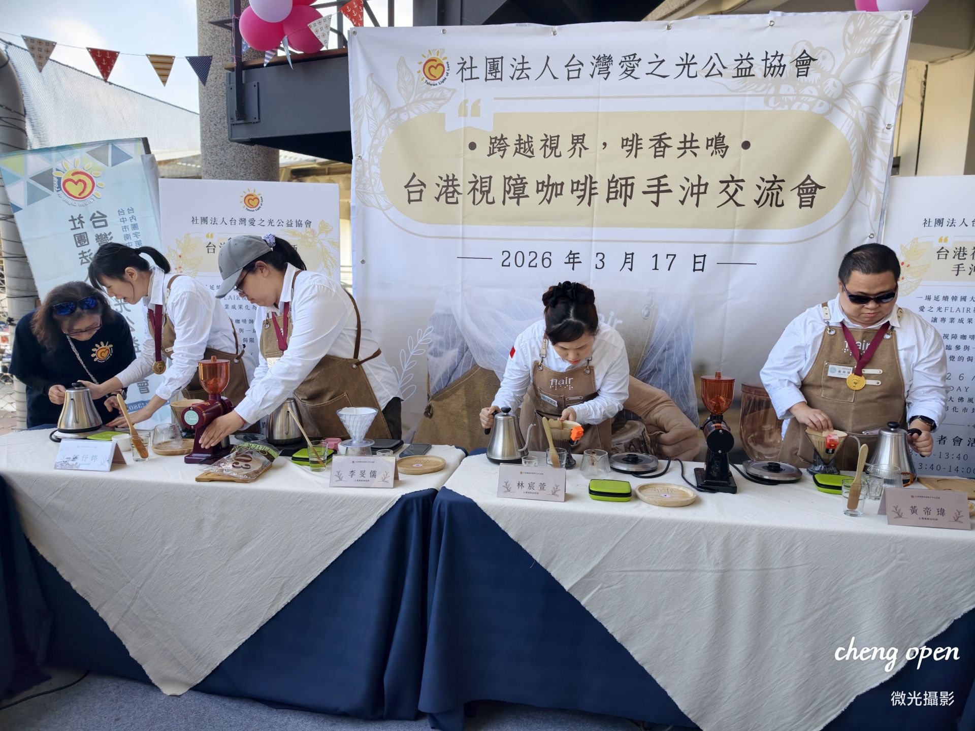 愛之光協會主辦的台港視障咖啡師首屆交流會成功舉行,視障咖啡師們展示手沖技藝,並分享如何通過咖啡改變生活,活出自信與精彩。活動彰顯視障者的無限可能,並強調社會支持的重要性。-